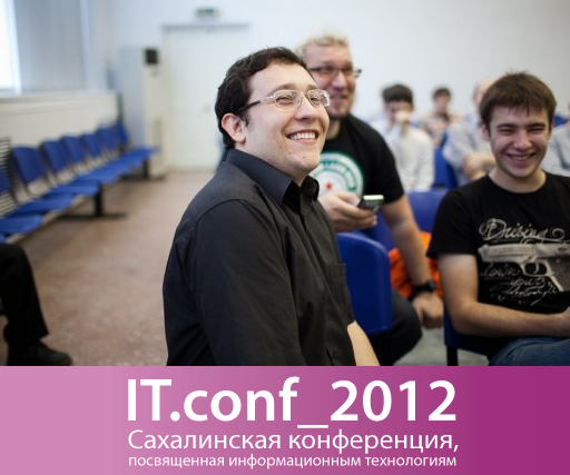 Напоминаю, что 15 декабря в2012 года в 12:00 в здании ЮСПЭТа (ул. Горького 28) состоится IT.conf_2012. Сахалинская конференция посвященная информационным технологиями.